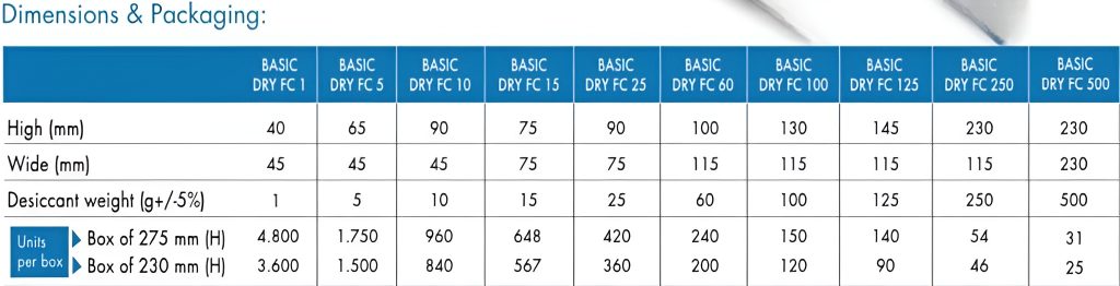 BASIC DRY FC SACHETS are the most effective solution to problems with moisture and condensation in packaged foodstuffs
