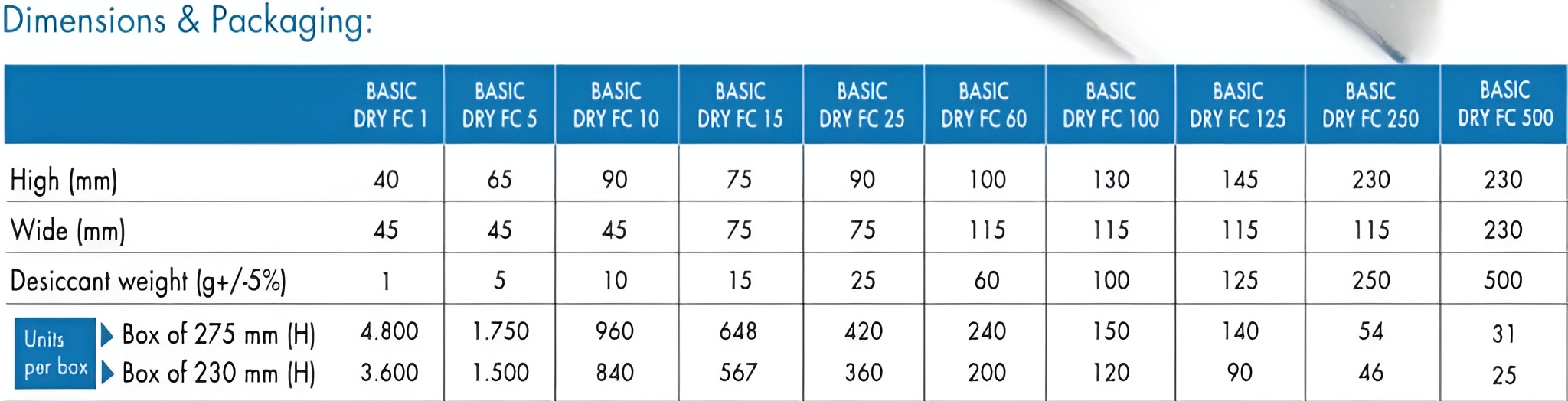 * Basic Dry FC sachets are packaged in a 300-micron plastic bag and export cardboard boxes, improving conditions of storage in the warehouses of our clients.